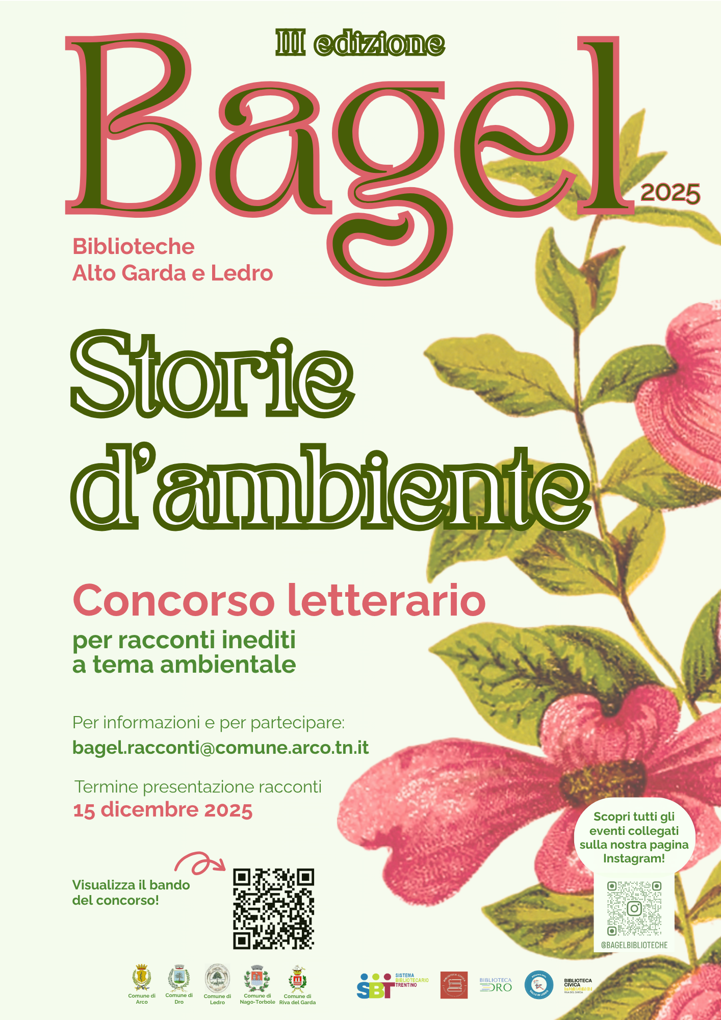 Il Concorso è aperto a chiunque abbia più di 14 anni, la partecipazione è gratuita. È sufficiente la voglia di mettersi in gioco, scrivendo un racconto che abbia come filo conduttore il rapporto con l’ambiente naturale o antropizzato e/o l’attenzione alle sue trasformazioni e ai suoi mutamenti. Il genere è libero: potrà pertanto essere un racconto autobiografico, fantasy, fantastico, giallo, di avventura, ecc. Il termine per inviare i racconti, scrivendo alla casella dedicata bagel.racconti@comune.arco.tn.it, scadrà il 15 dicembre 2025. La cerimonia di premiazione dei tre racconti migliori si svolgerà il 21 febbraio 2026.