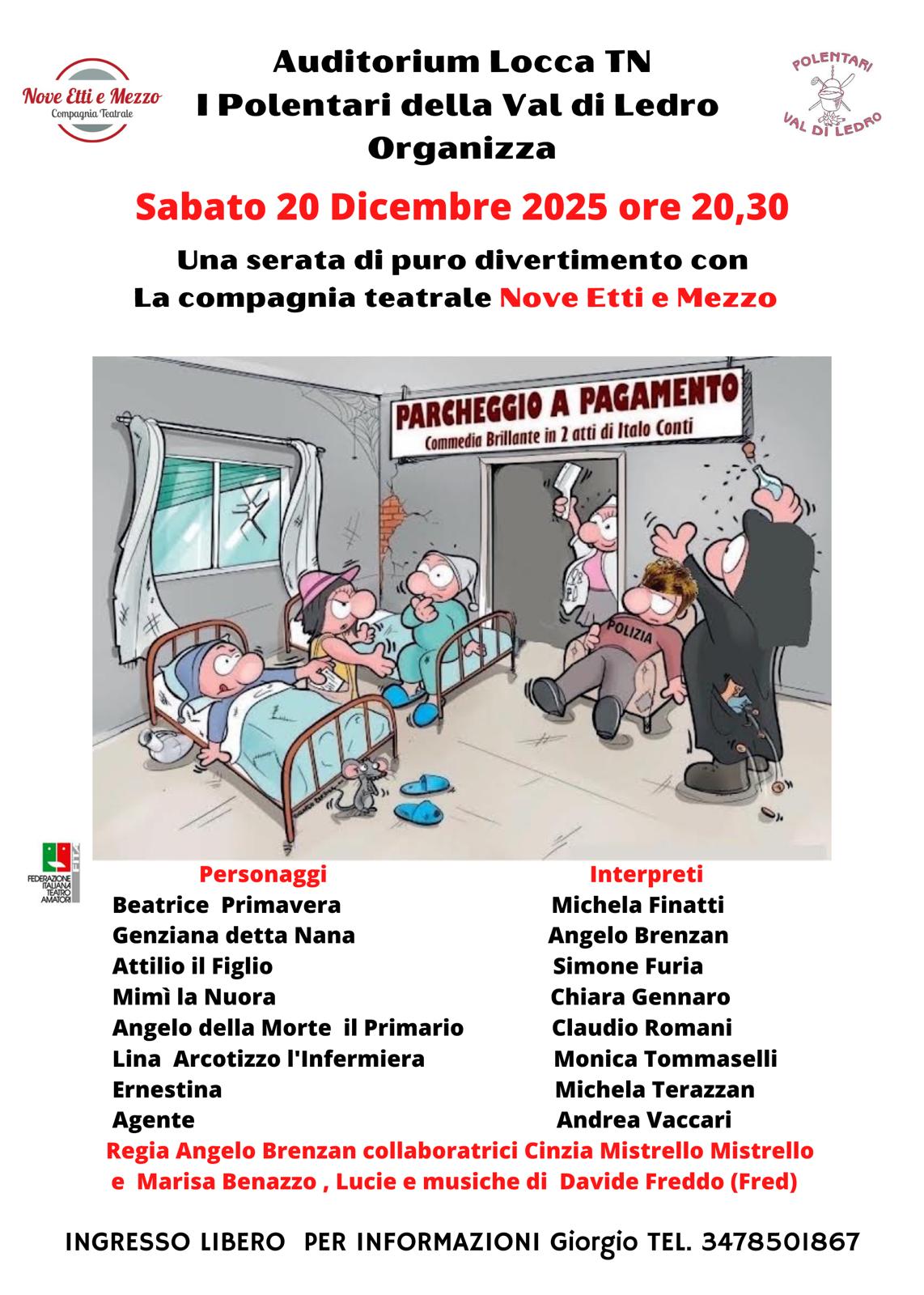 A seguire la Compagnia Teatrale "Nove etti e mezzo" si esibirà nella brillante commedia in due atti "Parcheggio a pagamento" di Italo Conti (locandina in allegato).