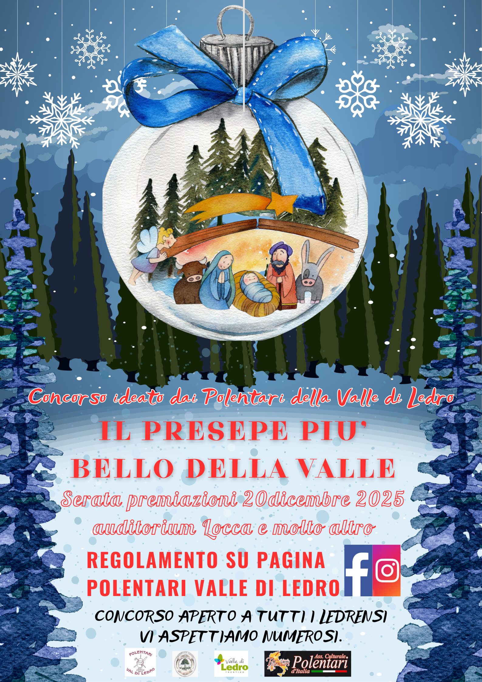 Sabato 20 dicembre 2025 alle ore 20.00 presso il Centro Culturale di Locca si svolgerà la premiazione del concorso "Il Presepe più bello della Valle" organizzato dal Gruppo Polentari Valle di Ledro.